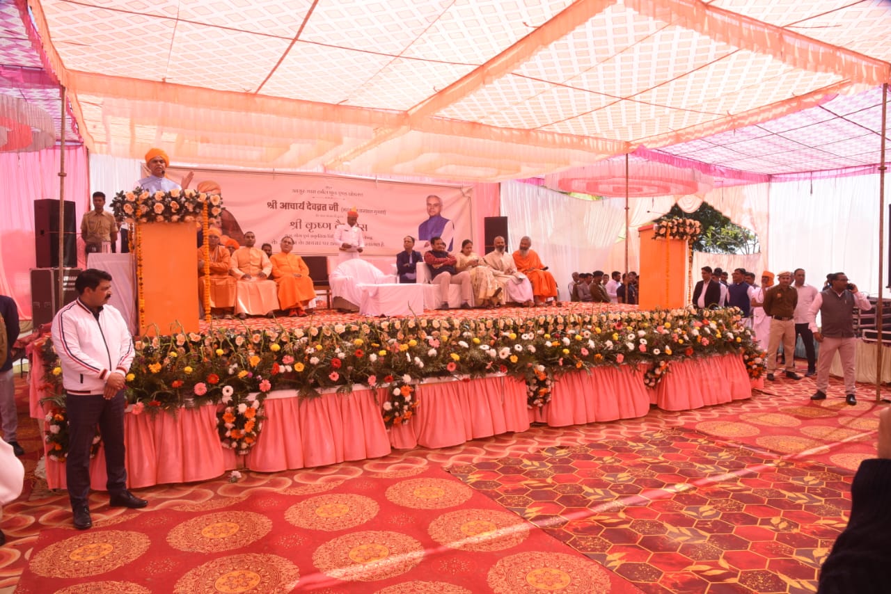 Acharya Devvrat Ji, Hon’ble Governor of Gujarat, and Shri Krishna Kumar, MLA of Bawal, inaugurating Ayur Dhara Wellness.
